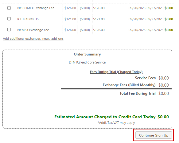 Um Futures-Kursdaten in Echtzeit zu erhalten, müssen Sie im Abschnitt "Inländische Futures-Daten" die folgenden Optionen auswählen: "CBOE Futures Exchange" (erfordert die Unterzeichnung einer Vereinbarung, siehe unten), "CBOT", "CME", "COMEX", "ICE Futures US" und "NYMEX":