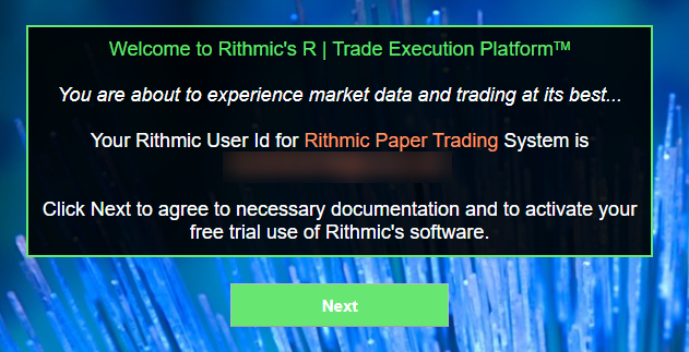 Wählen Sie bei der Anmeldung Rithmic Paper Trading, um auf die Demoserver des Anbieters zuzugreifen.