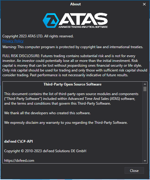 Im Abschnitt Über das Programm finden Sie Informationen über das Urheberrecht, die Datenschutzpolitik, Risikowarnungen und Informationen über die in der Plattform verwendete Software von Drittanbietern.