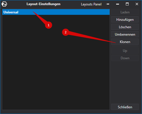 - die Schaltfläche Clone layout, nachdem Sie das gewünschte Arbeitslayout aus der Liste ausgewählt haben.