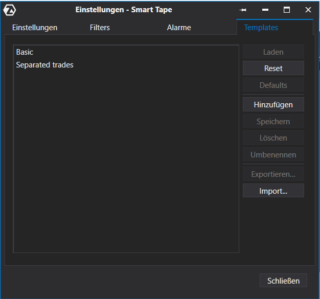 Sie können die Tape-Einstellungen als Vorlage (Snapshot) speichern.