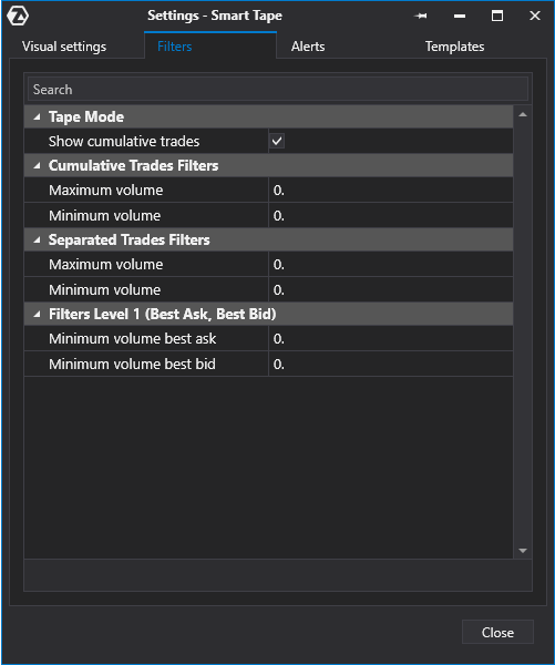 Filtert Prints mit definiertem Mindestvolumen für Best Bid/Ask.