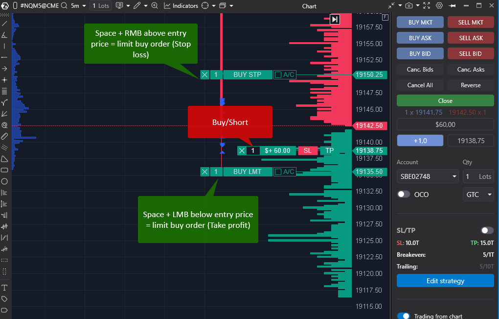 This article provides a visual guide and description of trading directly from the chart using the Chart Trader module.