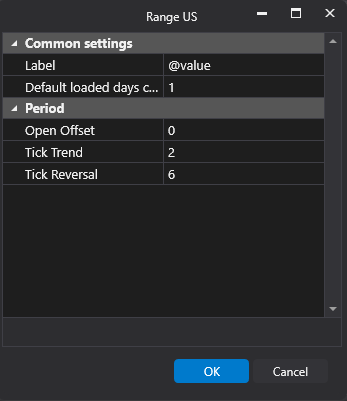 The figure below (Fig.1) shows an example of building RangeUS with the following parameters: Tick Trend - 10 and Tick Reversal - 5, for futures 6E.