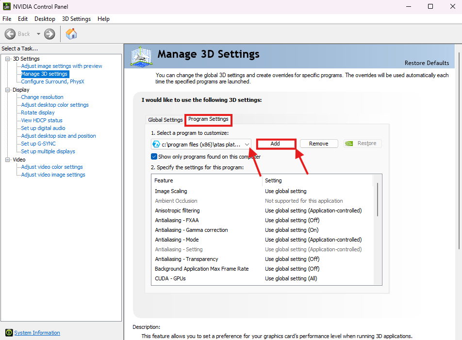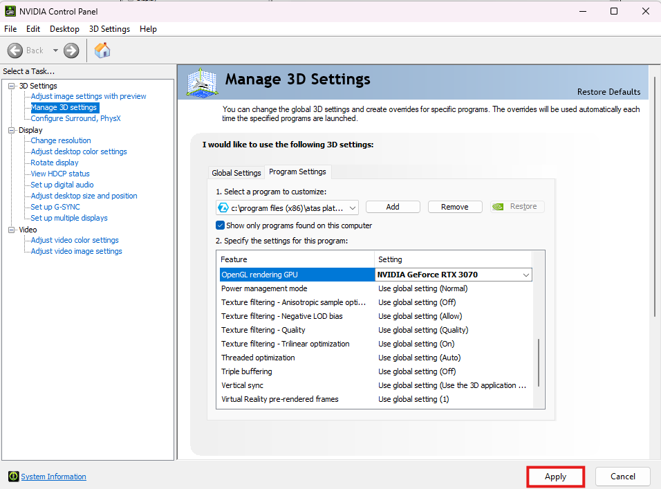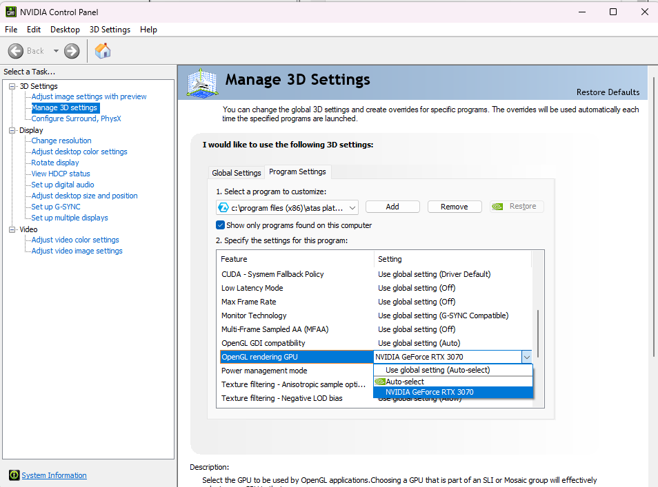 Follow these steps to ensure the ATAS platform uses a particular graphics card: