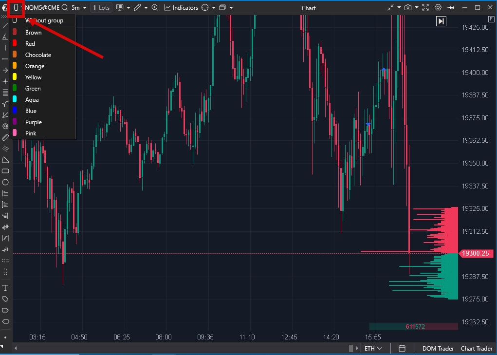 The color group can be assigned from the top-left corner of the chart window: