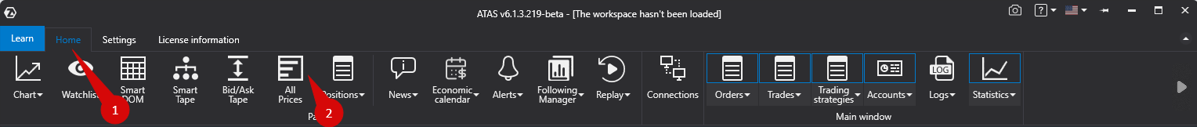 Para abrir este módulo, utilice el botón All Prices de la pestaña Inicio de la ventana principal de la plataforma.