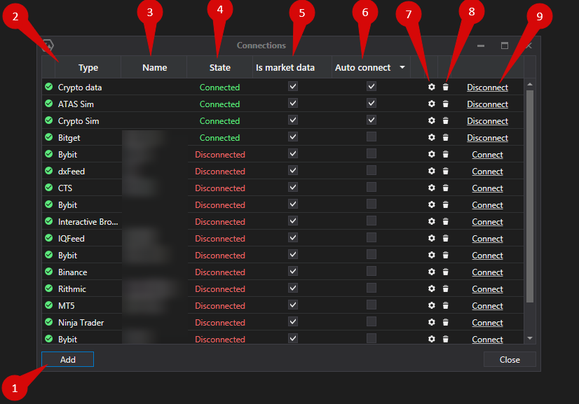 Solo un account Rithmic può essere connesso ad ATAS tramite RTrader Pro. Le impostazioni del connettore di ATAS e RTrader Pro devono corrispondere.