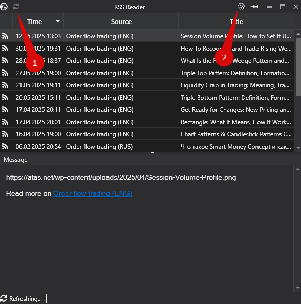 Il pulsante Aggiorna viene utilizzato per aggiornare le notizie, mentre il pulsante Impostazioni viene utilizzato per aprire le impostazioni della finestra delle notizie.