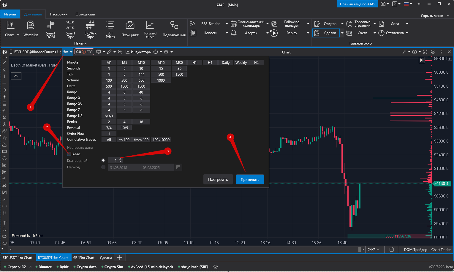 Если вам нужно единоразово поменять количество дней для загрузки или конечную дату, снимите галочку с Авто и выберите нужный параметр.