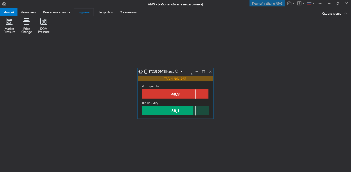 Виджет анализирует данные книги ордеров и рассчитывает взвешенную ликвидность для обеих сторон: