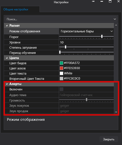 Отдельные звуковые файлы для оповещений о давлении Bid и Ask.